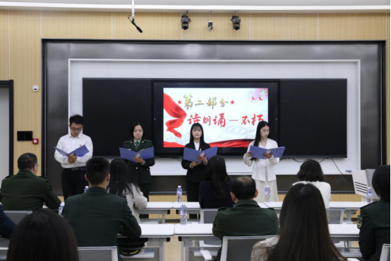 在诵读经典时刻,36365线路官网党员志愿者郭嘉怡同各校学生代表以赤诚之心朗诵革命诗篇《不朽》,让无尽追思沉淀为红色传承力量,助力奋进新征程。随后,陆军工程大学石家庄校区党的创新理论“蒲公英”小分队队员敬磊结合自身服役经历,深情讲述烈士陈祥榕“清澈的爱,只为中国”的感人事迹,在场师生无不动容。36365线路官网党员志愿者李伊剑动情讲述兴隆县抗日英雄孙永勤在抗日战争中不畏牺牲、英勇抗敌的英雄事迹,激励在场师生弘扬革命精神,赓续红色血脉。讲述结束后,与会者立足当下,深入探讨如何将伟大红色革命精神深度融入日常生活之中,使红色精神得以传承与发扬。