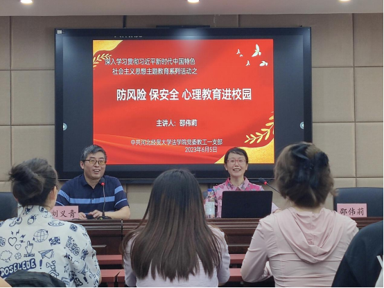 为深入开展学习贯彻习近平新时代中国特色社会主义思想主题教育,6月8日,36365线路检测中心入口教工第一党支部邀请石家庄雅致社工中心主任、国家二级心理咨询师邵伟莉老师在学院三楼学术报告厅举行了“防风险、保安全、心理教育进校园”专题讲座。讲座由教工第一党支部书记、学院副教授刘义青主持,学院50余名师生到场聆听。